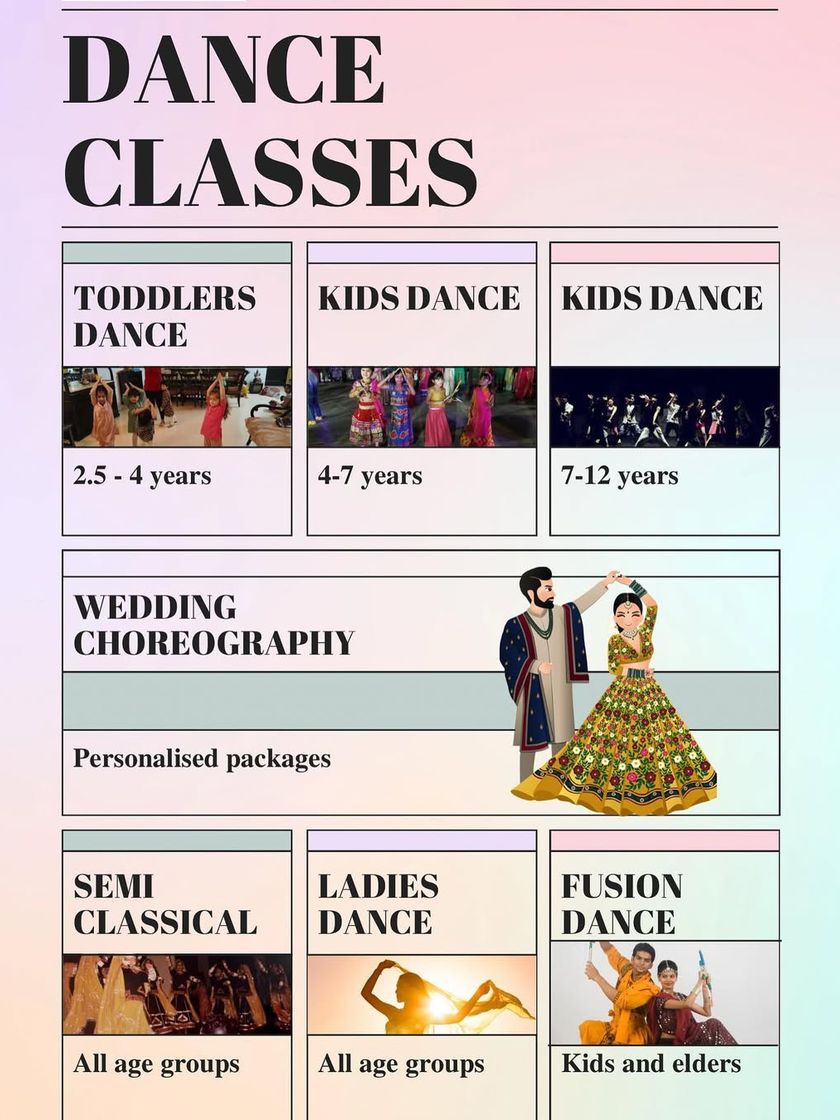 I offer a variety of dance programs tailored to different needs and age groups. You can find information on my ongoing kids' Bollywood dance batches, personalized wedding packages, corporate team-building workshops, and special classes for ladies.