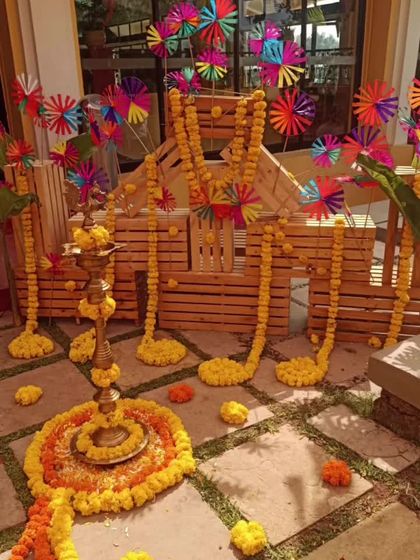 We specialize in creating the right atmosphere for your religious and festive events. We provide traditional decor for Mata ki Chowki, Bhagwat Saptah, and other pujas using marigolds and drapes, and design vibrant, thematic lobbies and spaces for festivals like Navratri.