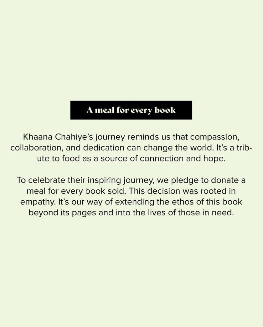 We believe in extending our mission of nourishment beyond the pages of our books. For every book sold, we donate a meal through our partnership with the Khaana Chahiye Foundation, an organization working to end hunger in Mumbai. Your gift makes a difference.