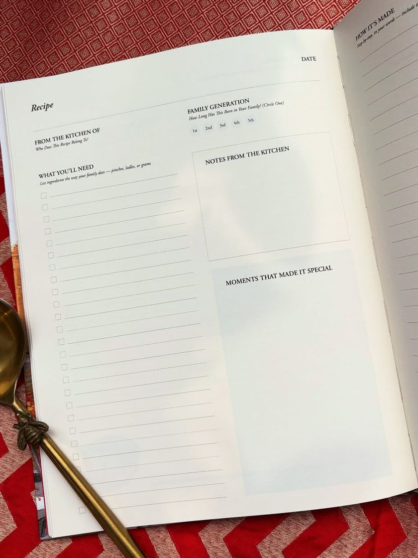 Our hardbound journal is designed to be more than a cookbook; it's a memory keeper. It has dedicated spaces for ingredients, instructions, family stories, and the little notes that make a recipe yours, creating a tangible heirloom to pass down through generations.