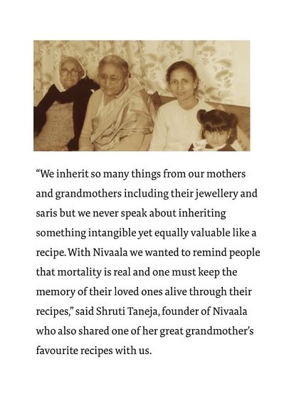 I am so grateful for the features and mentions Nivaala has received. This is a collection of articles and interviews that have beautifully captured our mission to preserve India's culinary heritage, one family recipe at a time.