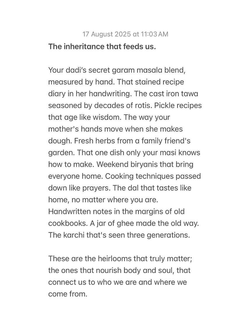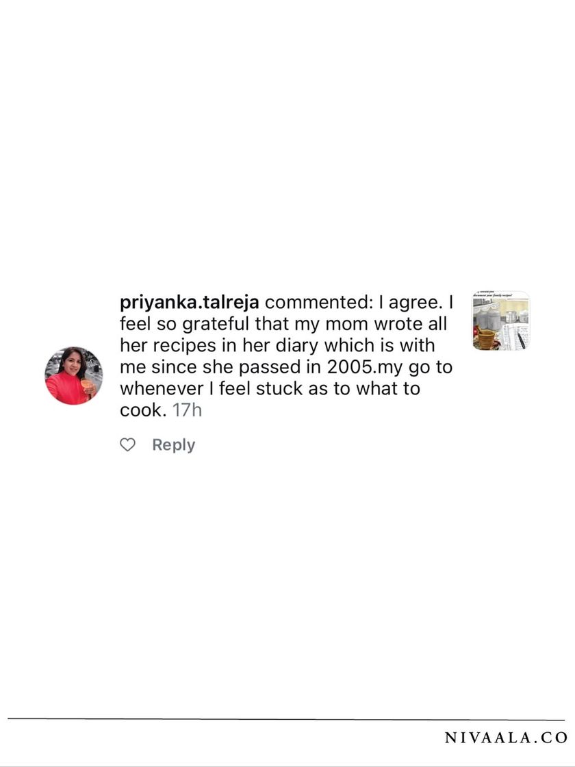 I started Nivaala after losing my own mother's recipes, a loss I still feel deeply. This mission is personal. It's about honoring the women who fed us and ensuring their love and wisdom, often shared through 'ghar ka khana' (home food), are never forgotten.