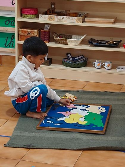 Child-Centric Montessori Learning - Kids learn at their own pace - hands-on math activities, puzzle maps, no cookie-cutter plan here.