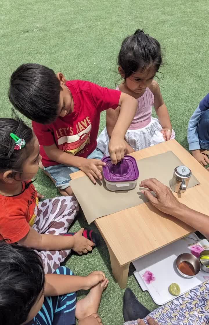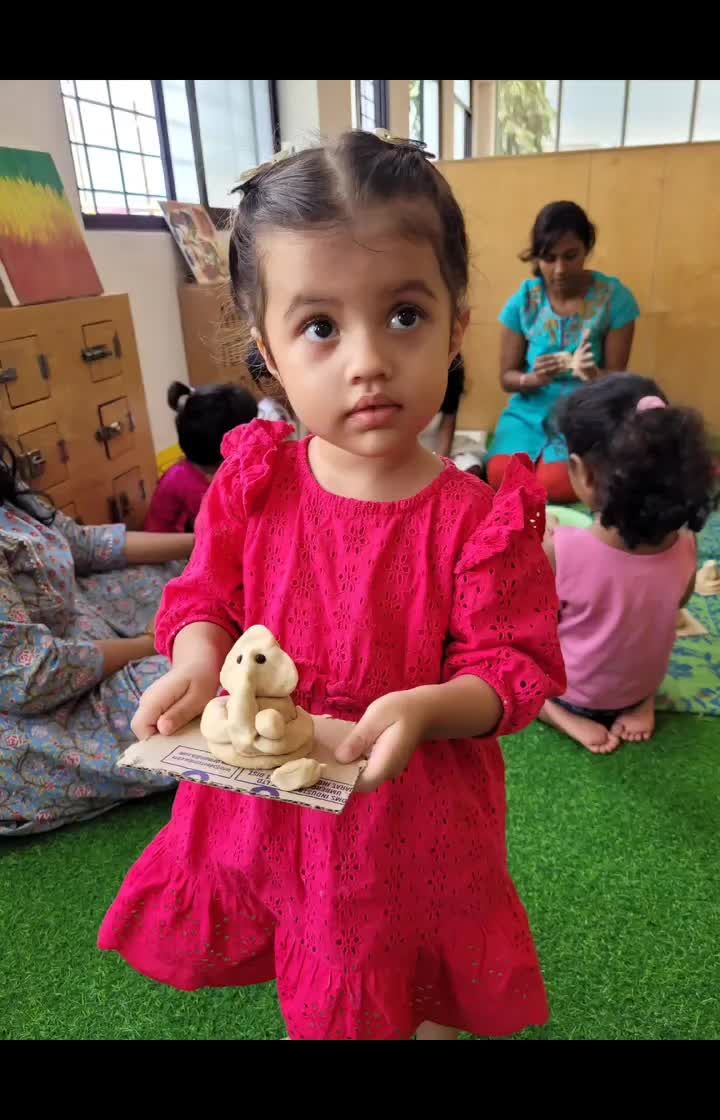 Our art sessions are all about self-expression and connecting with our culture. Children engage in process-based art using simple materials, creating everything from festive decorations and Ganesha idols to beautiful paintings and drawings.