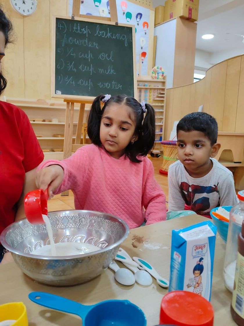 In Montessori, practical life activities are the foundation of learning, building independence, coordination, and concentration. Children learn through real tasks like baking a cake or preparing a snack, understanding processes and taking pride in their work.