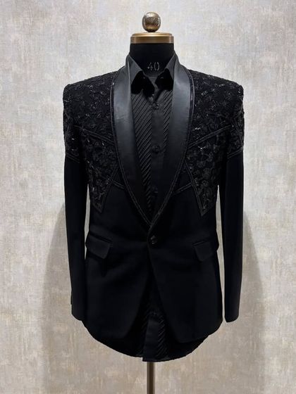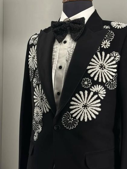 We specialize in creating exclusive, custom-made designer tuxedos that blend luxury with personalization. Our tuxedos feature intricate handcrafted embroidery, detailed cutwork, and premium fabric selections.