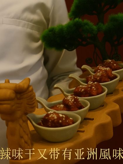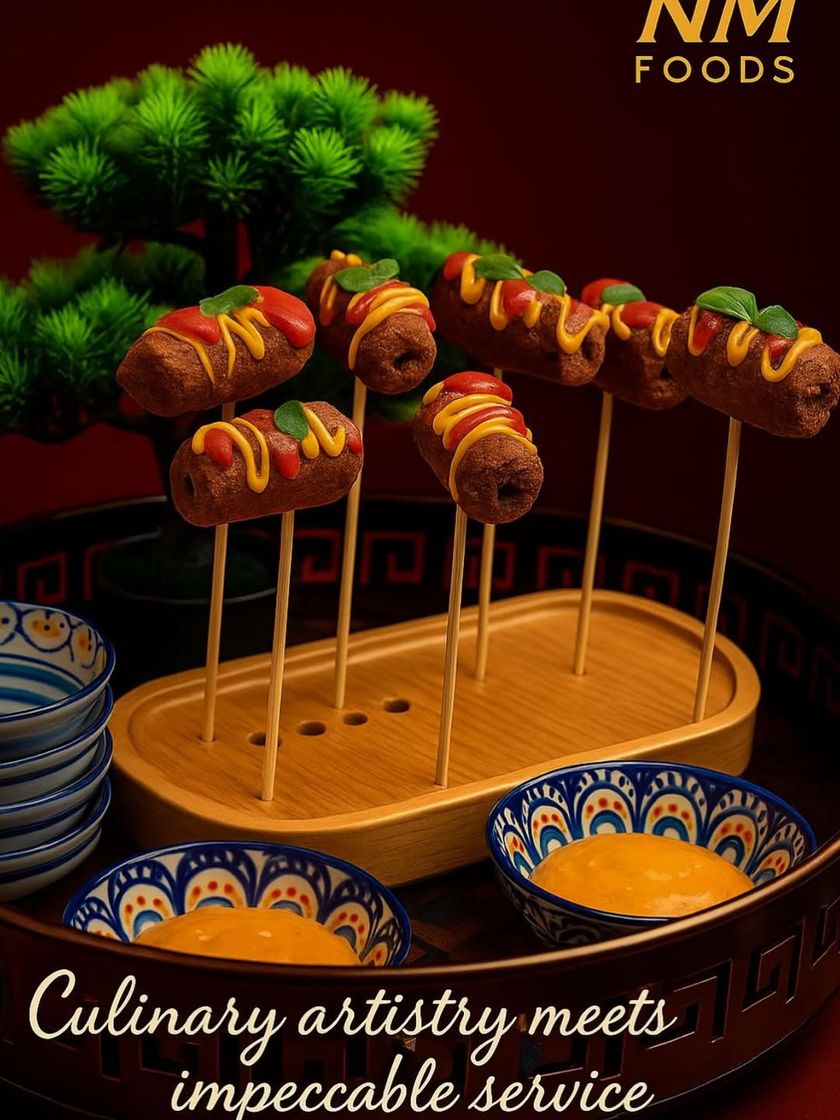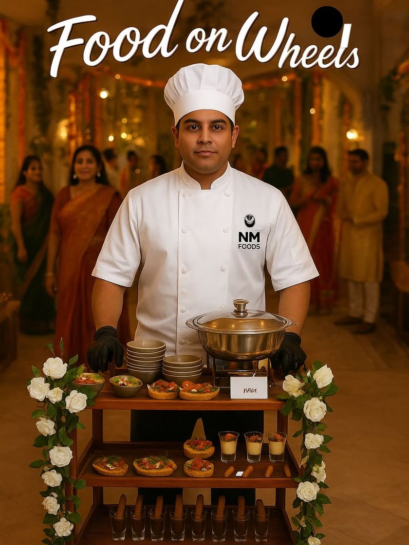 We redefine event dining by bringing the food to your guests. Our 'flying buffet' features uniformed staff circulating with trays of gourmet appetizers, while our 'Food on Wheels' cart offers a personal, chef-served experience, ensuring service is always seamless and elegant.