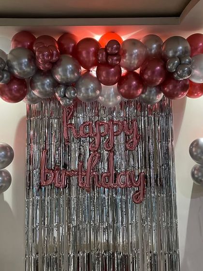 - I add metallic curtains, fairy lights, and fun foil balloons - think champagne bottles or butterflies.