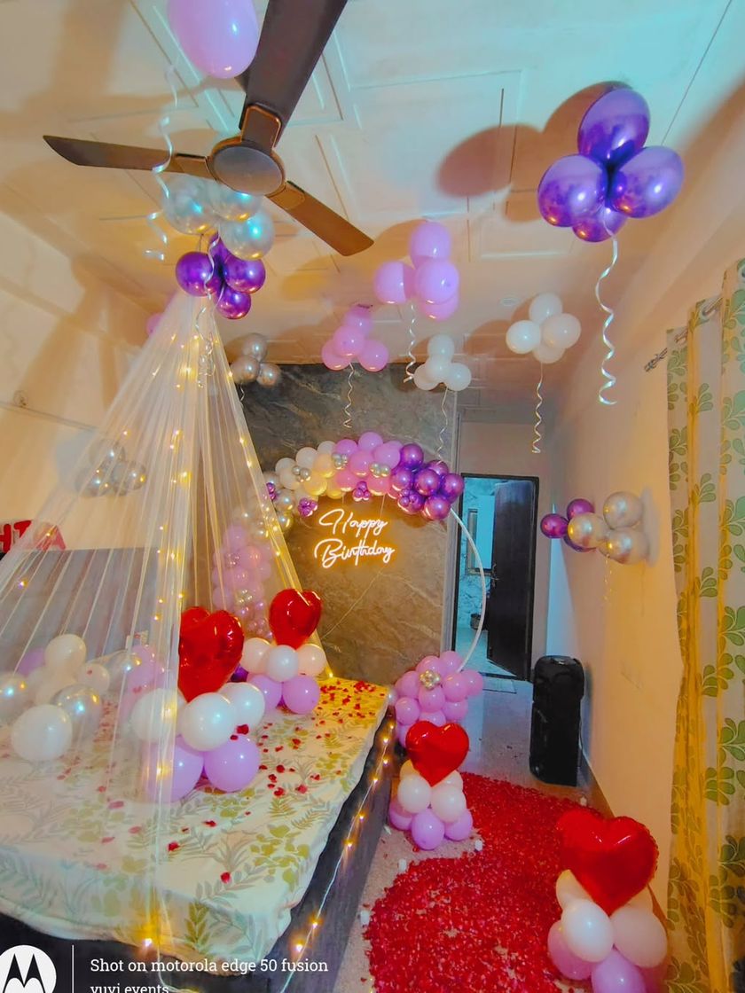 I specialize in creating romantic and intimate surprise decorations for birthdays and anniversaries right in your home. Setups can include balloons on the ceiling, fairy light canopies over the bed, and pathways made of rose petals for a truly memorable experience.
