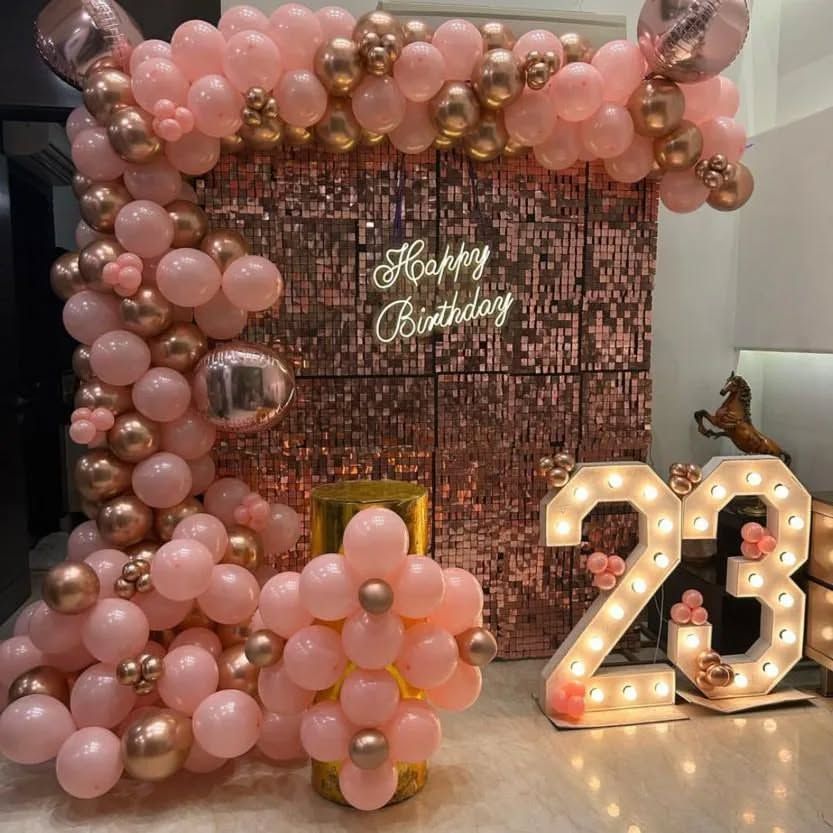 I design stylish and sophisticated decorations for adult birthdays and major milestones like the 18th, 21st, 30th, and 50th. My services include elegant balloon arches, sequin backdrops, custom neon signs, and light-up marquee numbers to create a memorable and photo-ready celebration.