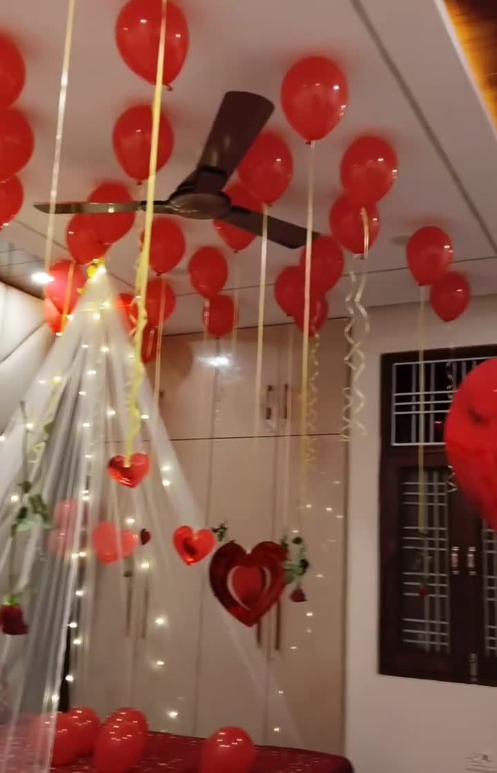I specialize in creating unforgettable romantic surprise decorations for birthdays and anniversaries. These setups often include a canopy with fairy lights over the bed, a floor covered in balloons and rose petals, and heart-shaped foil balloons to set a magical mood.