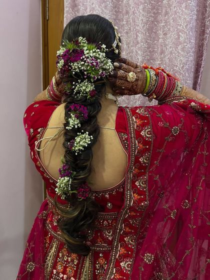 I offer complete bridal makeup, hair, mehndi, nails, and jewellery rental at your place, tailored to your style and comfort.
