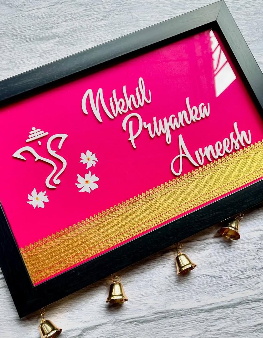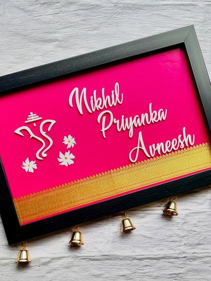 Your nameplate is the first thing that welcomes you and your guests. I specialize in creating personalized nameplates that reflect your family's story, whether you prefer the traditional elegance of Khun fabric, the classic warmth of wood, or a modern design. We can create them in Marathi, English, Gujarati, or any language you wish, complete with custom icons, colors, and details like little bells.