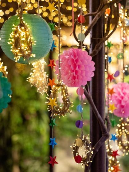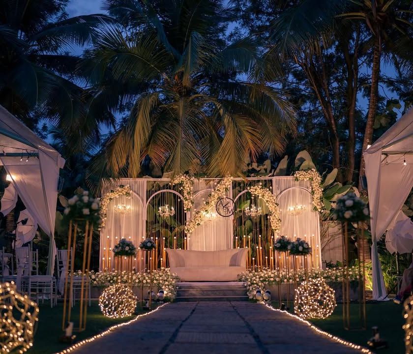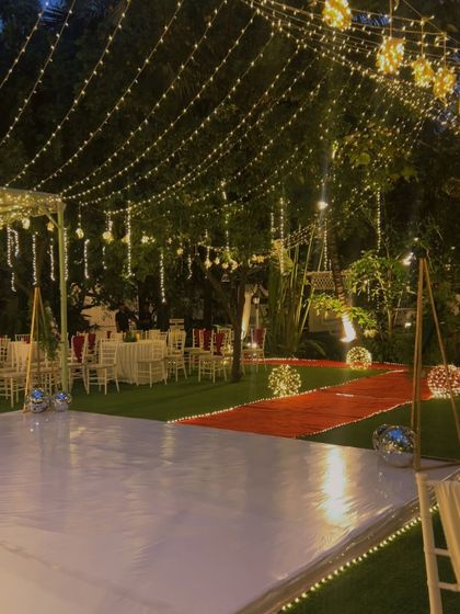 I design spectacular evening events, from high-energy Sangeet nights to elegant receptions. My expertise lies in creating atmosphere through lighting, including fairy light canopies and chandeliers, and setting up grand stages for performances and celebrations.