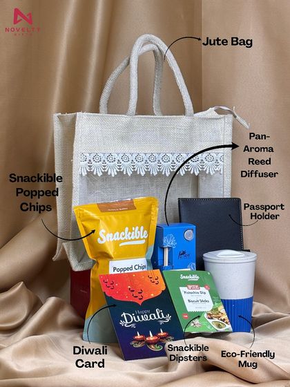 For those who prefer a contemporary and sustainable touch, I offer a range of hampers in reusable jute bags, rustic cane baskets, and minimalist boxes. These are filled with eco-friendly products like bamboo mugs, plantable crackers, and organic snacks, alongside modern lifestyle items.