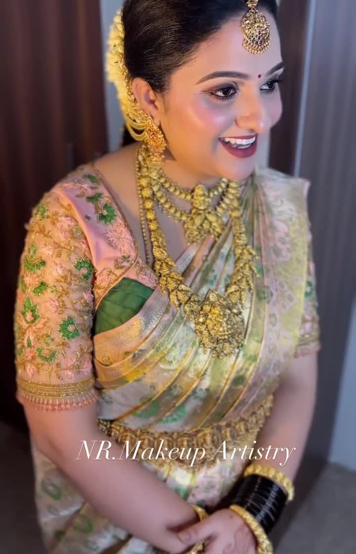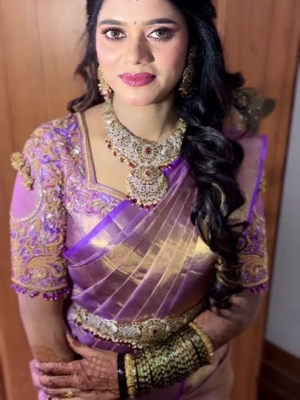 I specialize in creating looks for traditional South Indian ceremonies like the Muhurtham, Varapooje, and engagement. My focus is on a radiant, 'glass skin' finish that complements your silk saree and traditional jewelry, ensuring you look timeless.