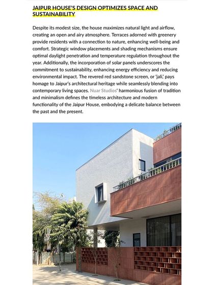Mixing Minimalism & Tradition - Think neo-classical residential design, red sandstone jali, natural materials architecture—calm meets character.