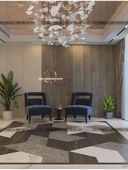 - Foyers with a full-on hotel lobby vibe, like stone inlay floors and sculptural partitions