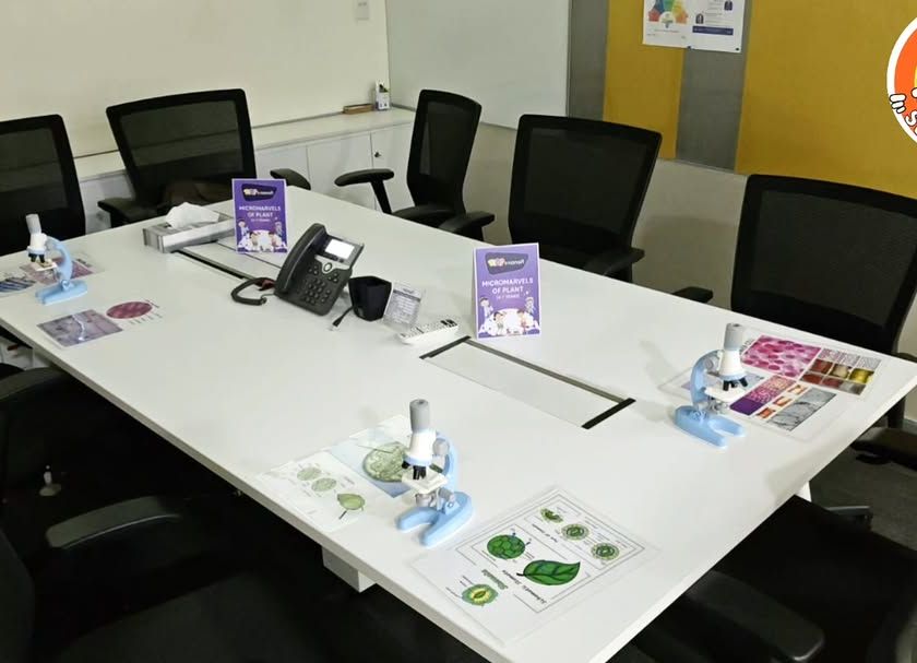 We transform your office or boardroom into a mini science lab for "Kids at Work" days or employee engagement events. We handle the complete setup for activities like DIY sanitizer kits, microscope exploration, and nature art.