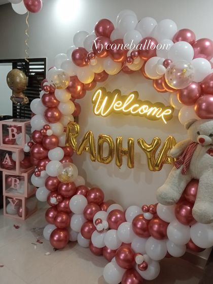 We specialize in creating enchanting balloon decorations for bridal and baby showers. Our designs include elegant pink and gold balloon arrangements, neon signs, and themed props for bridal showers. For baby showers, we create charming setups with blue and pink balloons, incorporating teddy bear themes and personalized name displays.