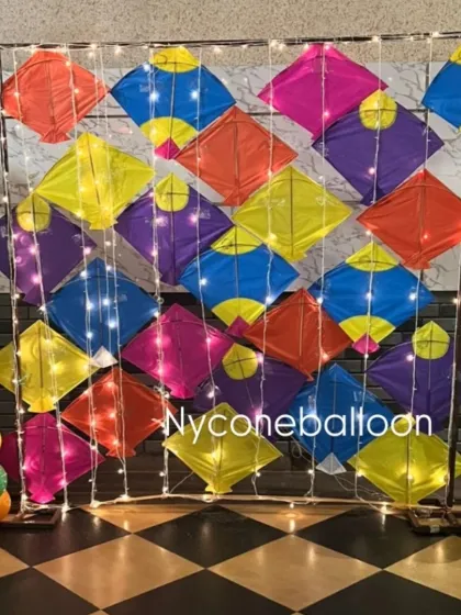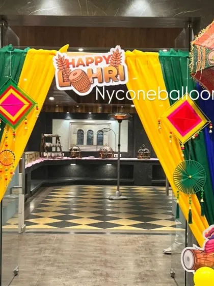 We specialize in creating vibrant festival and cultural event decorations that blend traditional elements with modern balloon artistry. Our offerings include themed setups for Diwali with black and gold balloons paired with lanterns, and Lohri celebrations featuring colorful kites and traditional drapes.