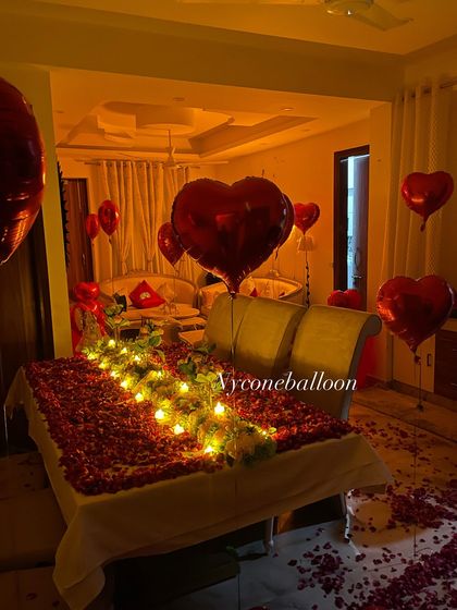 We specialize in creating enchanting romantic settings for anniversaries, proposals, and intimate celebrations. Our decorations feature elegant heart-shaped balloon arrangements, rose petals, romantic lighting, and personalized elements like illuminated signs and themed props.