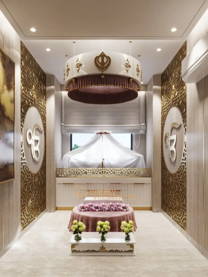 I create tranquil prayer and meditation rooms that blend spiritual reverence with modern architectural principles. These spaces are designed with careful attention to detail, using elements like jaali screens, symbolic motifs, and serene lighting to foster a peaceful atmosphere.