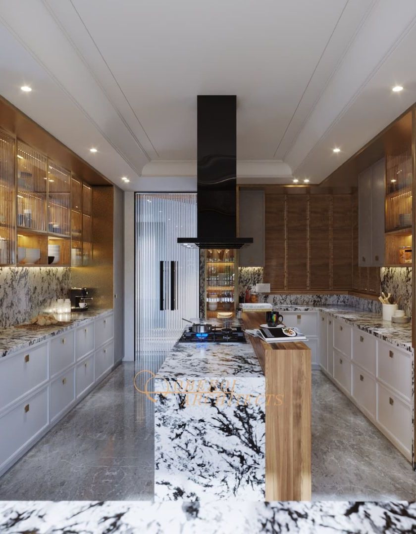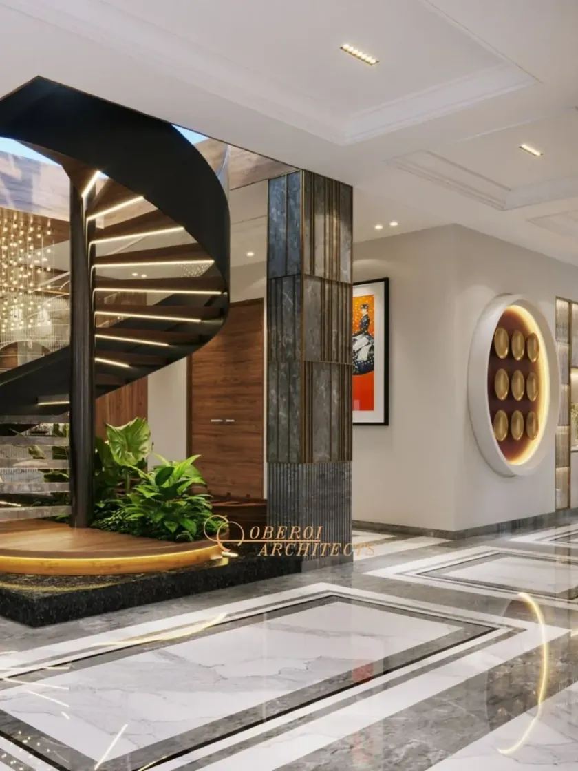 The first impression of a home should be a statement of its character. I design foyers, atriums, and hallways with architectural features like spiral staircases, double-height ceilings, and unique material combinations to create a memorable arrival experience.