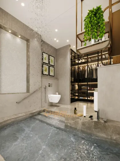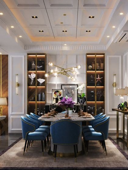 - Cladding: Extensive wall paneling using Natural Veneer, Mirrors, and PVD Coated Stainless Steel profiles.