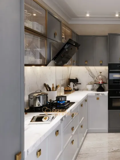 We see the kitchen as a space that must be both beautiful and highly functional. Our designs feature smart storage solutions, premium materials like marble and wood, and advanced appliances, all integrated into a seamless and elegant layout. We offer various styles, from warm wood finishes to sleek, modern aesthetics.
