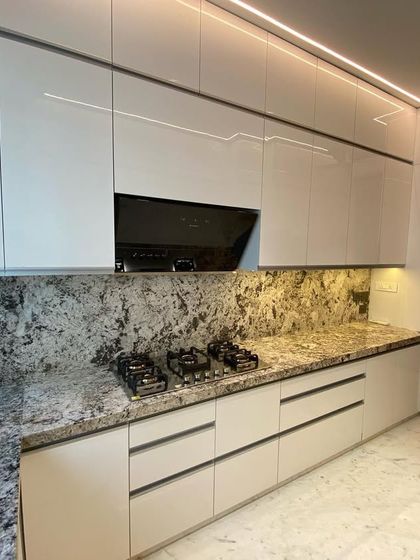 We design and install modular kitchens with custom layouts, marine ply cabinets, smart storage solutions, and practical features like soft-close drawers and handle-less cabinets, all tailored to your space and needs.