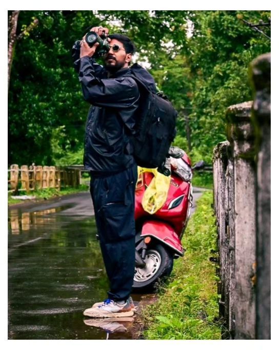 A quick look at the person behind the camera. We are always on the move, equipped with our gear and ready to find the perfect shot, whether it's on a wet street in Goa or in the middle of a high-profile event.