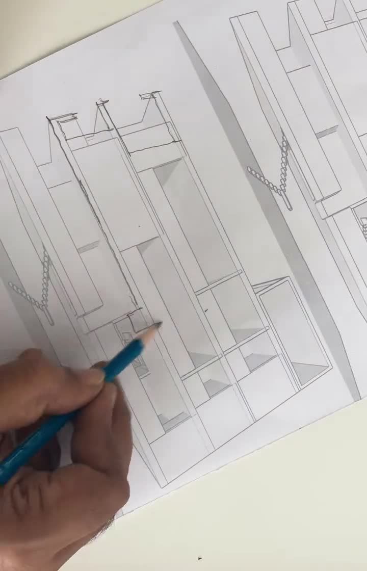 Every project begins with a hand drawing to establish the core idea before moving to 3D visualization. This collection shows the collaborative process of refining concepts, exploring multiple options, and translating the initial sketch into a tangible architectural form.