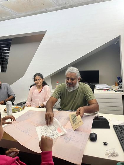 A glimpse into our design environment, where collaboration and mentorship are central to our practice. We believe in learning from the history and craft of architecture, which starts with hands-on engagement with drawings and models.