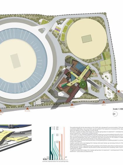 This is a deep dive into a large-scale master plan for the Maharashtra Cricket Association stadium complex. The design addresses complex zoning strategies, pedestrian and vehicular circulation, and the integration of multiple structures including a hotel, clubhouse, and terraced parking.