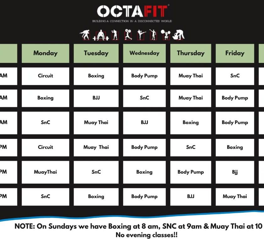 This is the first thing a potential client sees. It’s a powerful, curated look into what OctaFit is all about: real training, real community, and real transformation. This selection is designed to capture attention and showcase the breadth of our offerings, from our core BJJ to our packed boxing classes and unique kids' program.