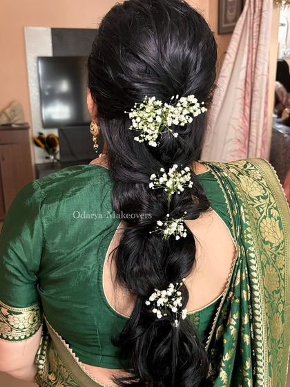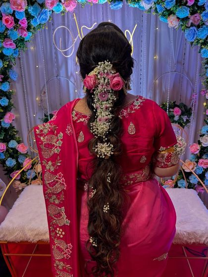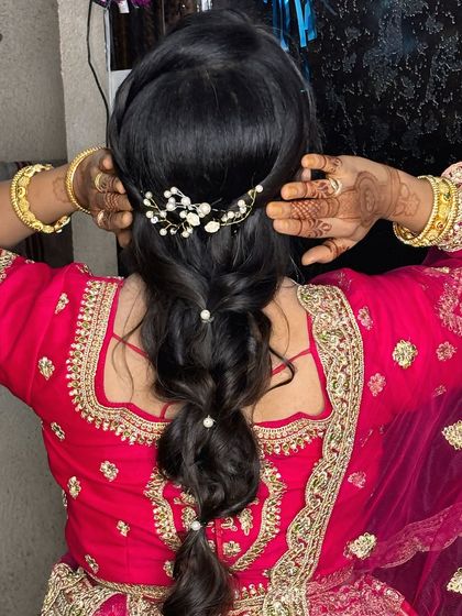 I specialize in creating intricate bridal hairstyles, with particular expertise in South Indian bridal looks. My services include elaborate braiding techniques, traditional updos, and floral hair embellishments to complement bridal attire.