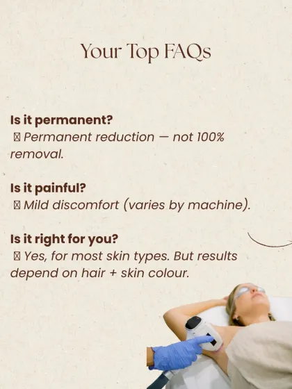 I do laser hair removal for unwanted or problem hair using USFDA-approved lasers, with every session done by certified therapists under my supervision for safety and better results than salon treatments.