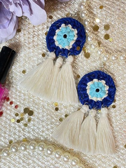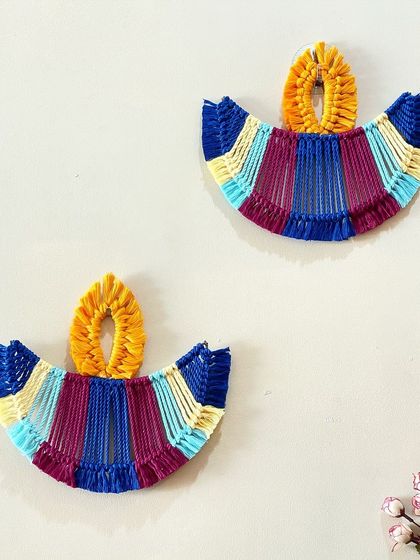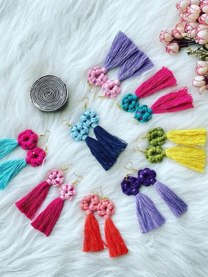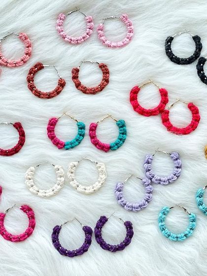 I make handmade macrame earrings, belts, hair bands, and anklets in custom colors and sizes, all crafted by me in Ambala using eco-friendly materials.