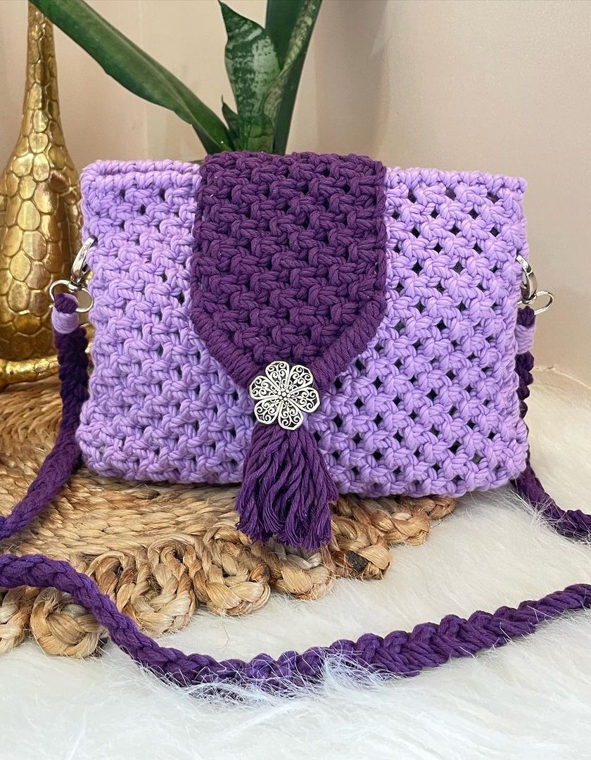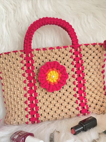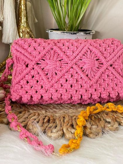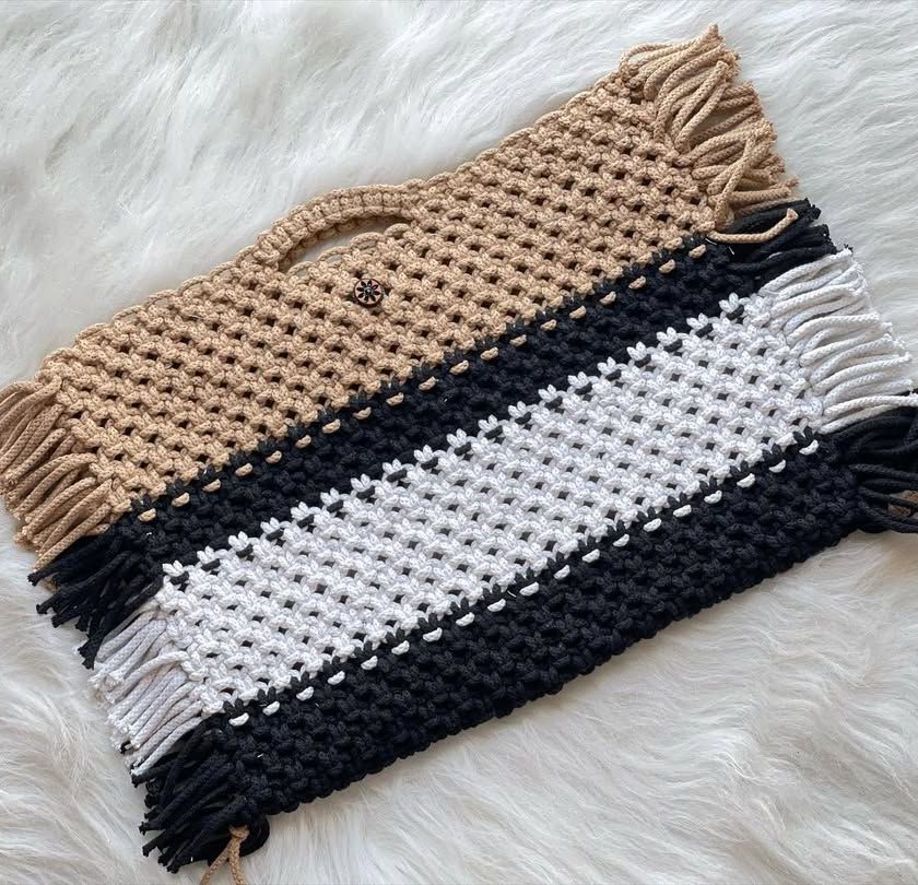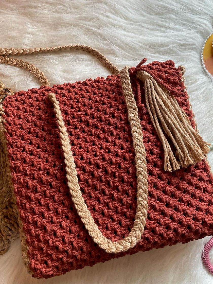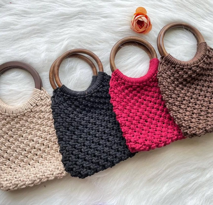 Need a bit more room? My shoulder and tote bags are spacious and sturdy without being bulky. I make them in a variety of color combinations and knot patterns, perfect for carrying everything from your market haul to your daily must-haves.