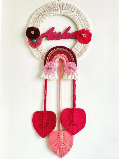 Let's create something truly one-of-a-kind together. I can incorporate names, special dates, or meaningful figures into a beautiful macrame piece, making it the perfect heartfelt gift for baby showers, anniversaries, or just because.