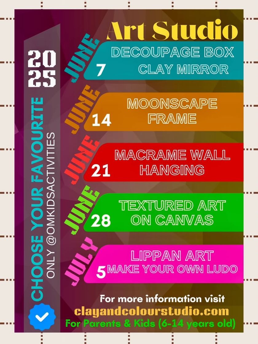 Find all the details about our upcoming workshops, clubs, and camp schedules here. This section includes information on timings, age groups, and the variety of programs we offer, both online and in our studio.