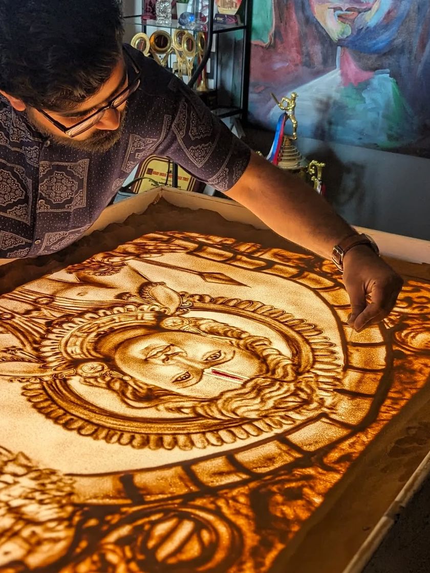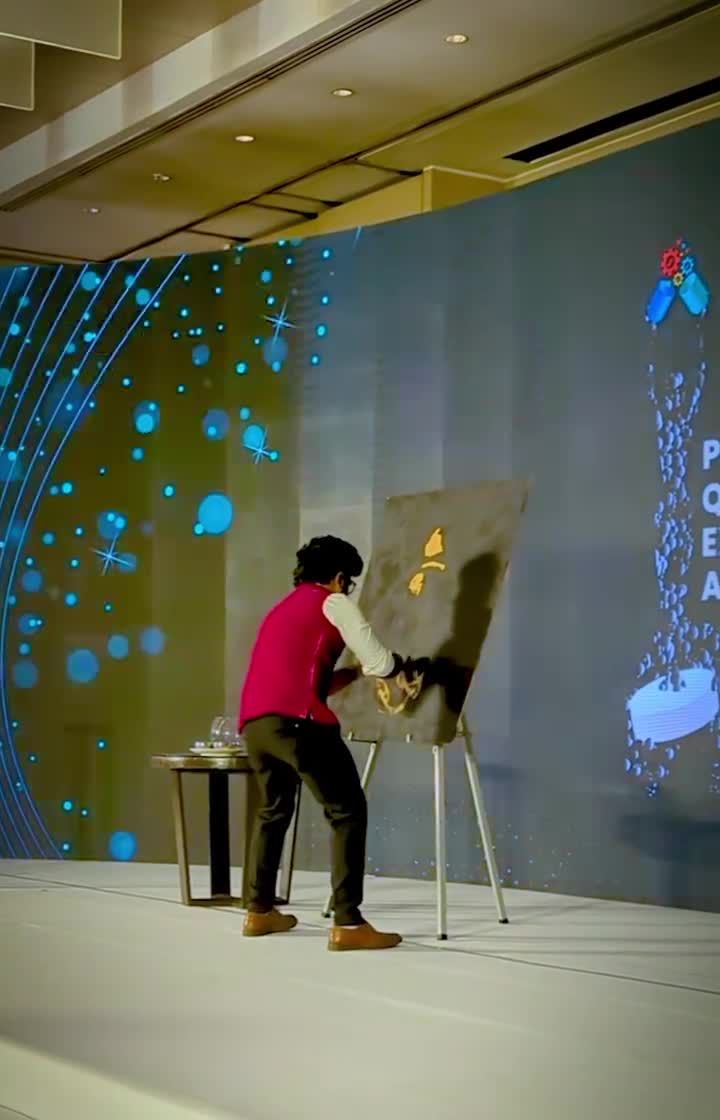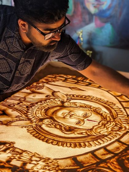 I use a lightbox and fine sand to tell your unique story, grain by grain. Whether it's a couple's journey for a wedding, a company's history for a corporate event, or a tribute to a legend, I create a flowing, animated narrative that is projected live for everyone to see.