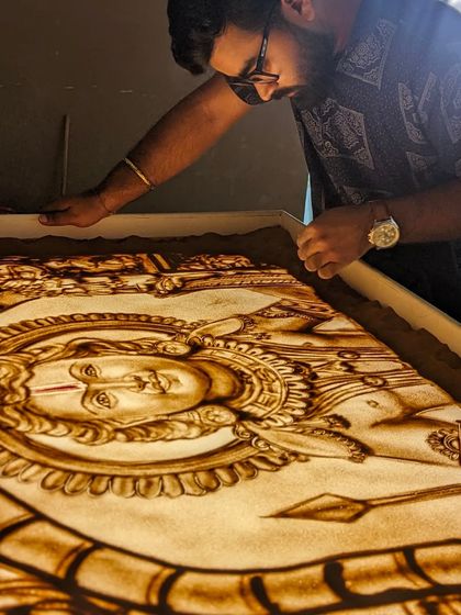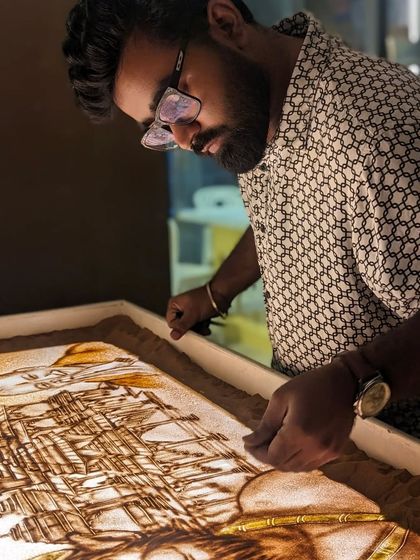 I specialize in creating intricate sand art pieces during live events, using a lightbox to enhance visibility and detail. My performances often focus on cultural and religious themes, including tributes to historical figures and celebrations of Indian festivals.