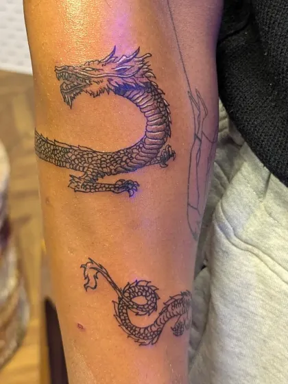 Custom black and grey tattoos are my main thing. I get a kick out of working on detailed animals, mythical creatures, and characters that inspire you. If space, planets, or geometric tattoo designs interest you, I love mixing cosmic vibes with clean lines for something really fresh. I also enjoy fine line tattoo art - whether it's Sanskrit tattoo script, floral wrist patterns, or custom lettering, I make sure the details stand out.