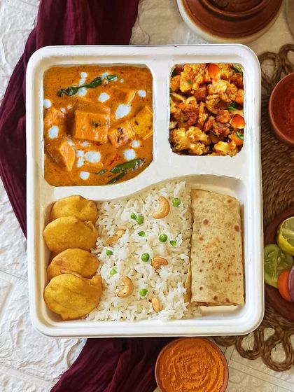 We deliver wholesome, home-cooked tiffin meals with a weekly changing menu. Your food is packed in sustainable steel tiffins, with veg and non-veg always prepared separately.