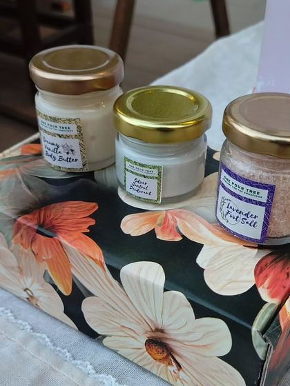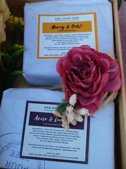 I make handmade custom gift hampers and event favors with natural self-care items like soaps and balms, packed to order without synthetic colors or fragrances.