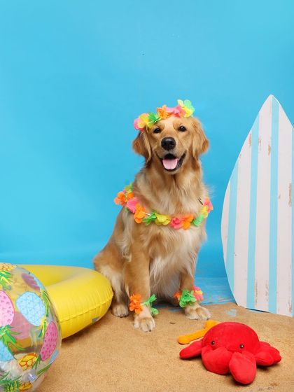 We create imaginative pet photography sessions with creative props and specially designed backgrounds. Our themes include beach settings, floral arrangements, and seasonal setups that bring out your pet's personality in a unique way.