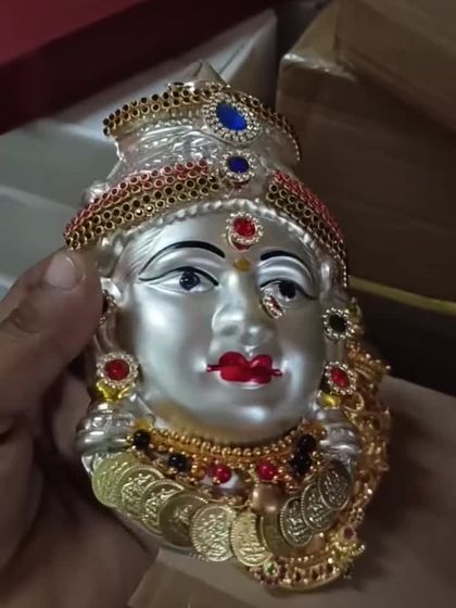 Varamahalakshmi aur Diwali jaise khaas maukon ke liye hamari Lakshmi collection dekhein. Ismein aapko alag alag design ke Mukhavada (face masks) milenge, jo kalash par sajane ke liye perfect hain, saath hi Lakshmi-Ganesh yantra aur diyas bhi. Har piece ko shradha aur pyar se banaya gaya hai.