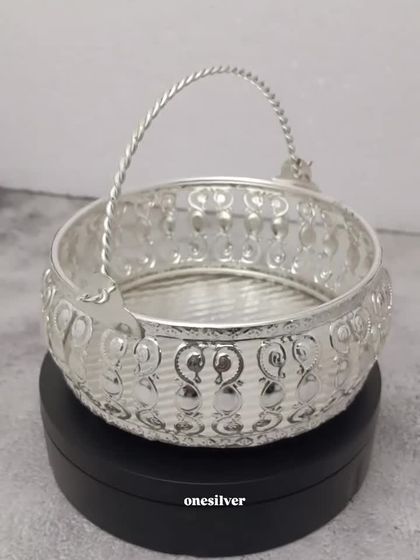 My collection of urlis, trays, and baskets are perfect for both pooja and decorative use. Use the German silver or brass urlis to float flowers and candles for a peaceful welcome, and use the carved trays and baskets to organize pooja items or serve guests.